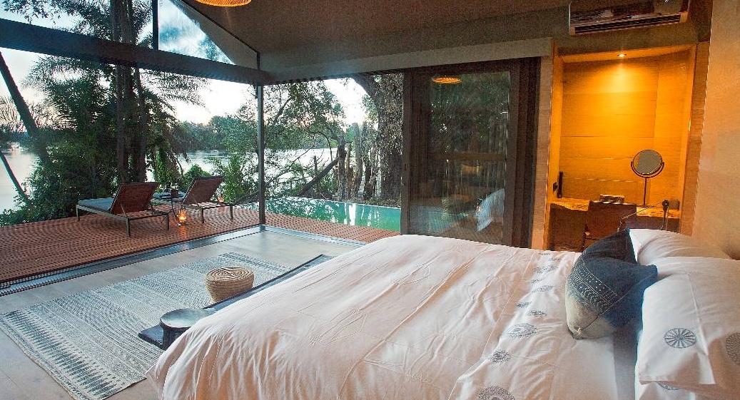 The lodge offers daily excursions to the Zambian side (and Zimbabwean side – in the dry season) of the Victoria Falls, private river cruises, cultural visits, fishing expeditions, canoeing, rhino tracking, and game drives, all included in your stay. Additionally, one can book external activities such as guided rainforest walks, bungee jumping, and helicopter flips over ‘The Smoke That Thunders’ on your behalf.